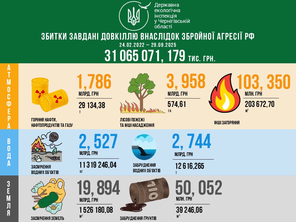 Актуальна інформація про завдані збитки довкіллю внаслідок збройної агресії РФ на території Чернігівської області