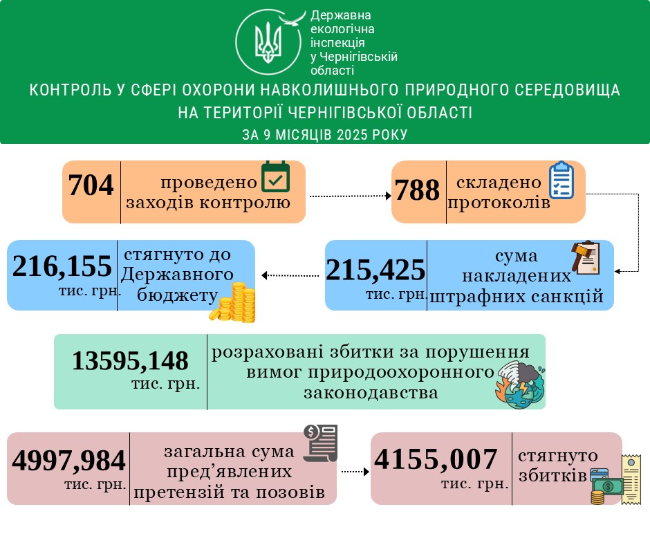 Інформація про результати роботи Державної екологічної інспекції у Чернігівській області за 9 місяців 2025 року.