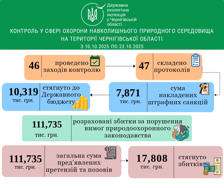Інформація про результати роботи Державної екологічної інспекції у Чернігівській області у період з 10.10.2025 - 23.10.2025