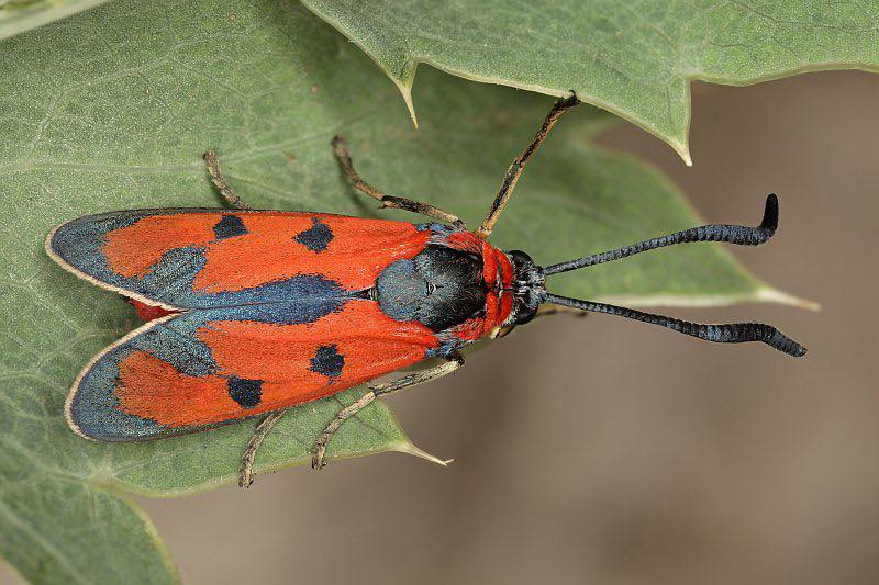 розмахом крил - 25-32 мм. Патагії та тегули червоні. Переднє крило чорне з