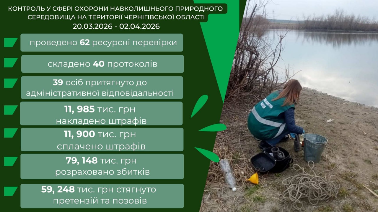Інформація про результати роботи Державної екологічної інспекції у Чернігівській області в період з 20.03.2026 по 02.04.2026