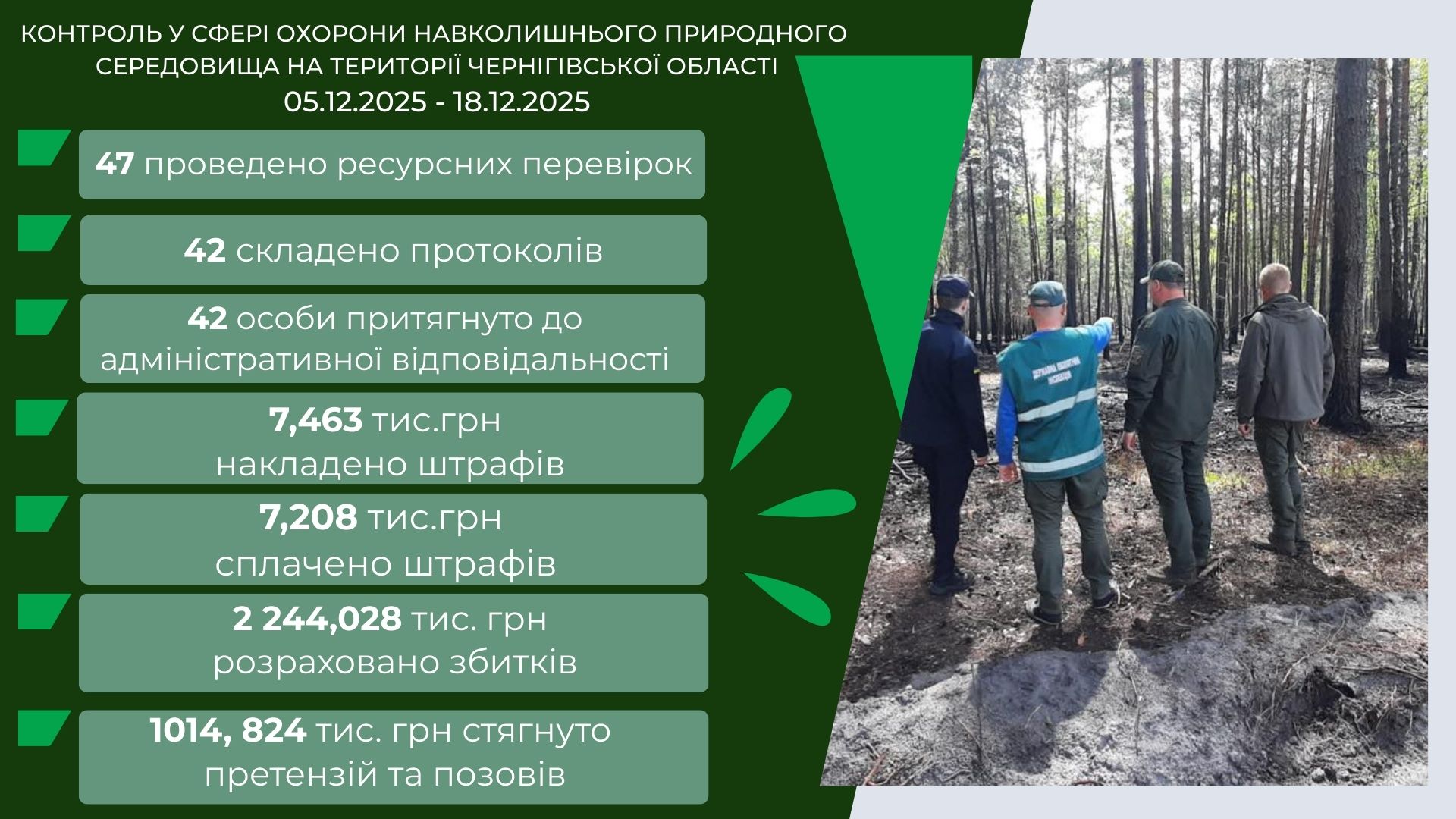 Iнфoрмація прo результати роботи Державної екологічної інспекції у Чернігівській області у період з 05.12.2025 по 18.12.2025
